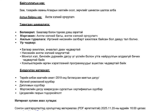 АГААРЫН ХӨЛГИЙН ОСОЛ, ЗӨРЧЛИЙГ ШИНЖЛЭН ШАЛГАХ АЛБАНЫ ЦАХИМ ХУУДСАНД ТАВТАЙ МОРИЛНО УУ